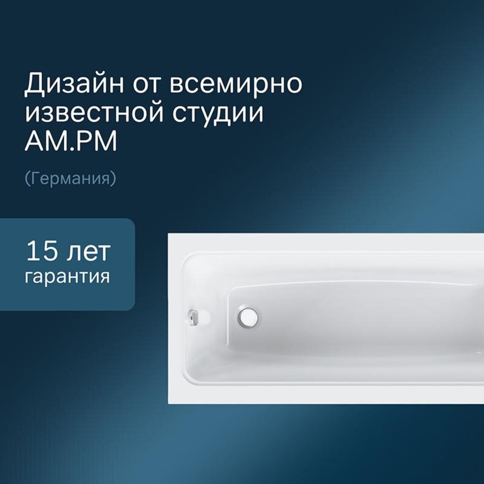 Дизайн от бюро AM.PM: ванна выполнена в современном стиле и спроектирована с учетом максимального комфорта для любой ванной комнаты.