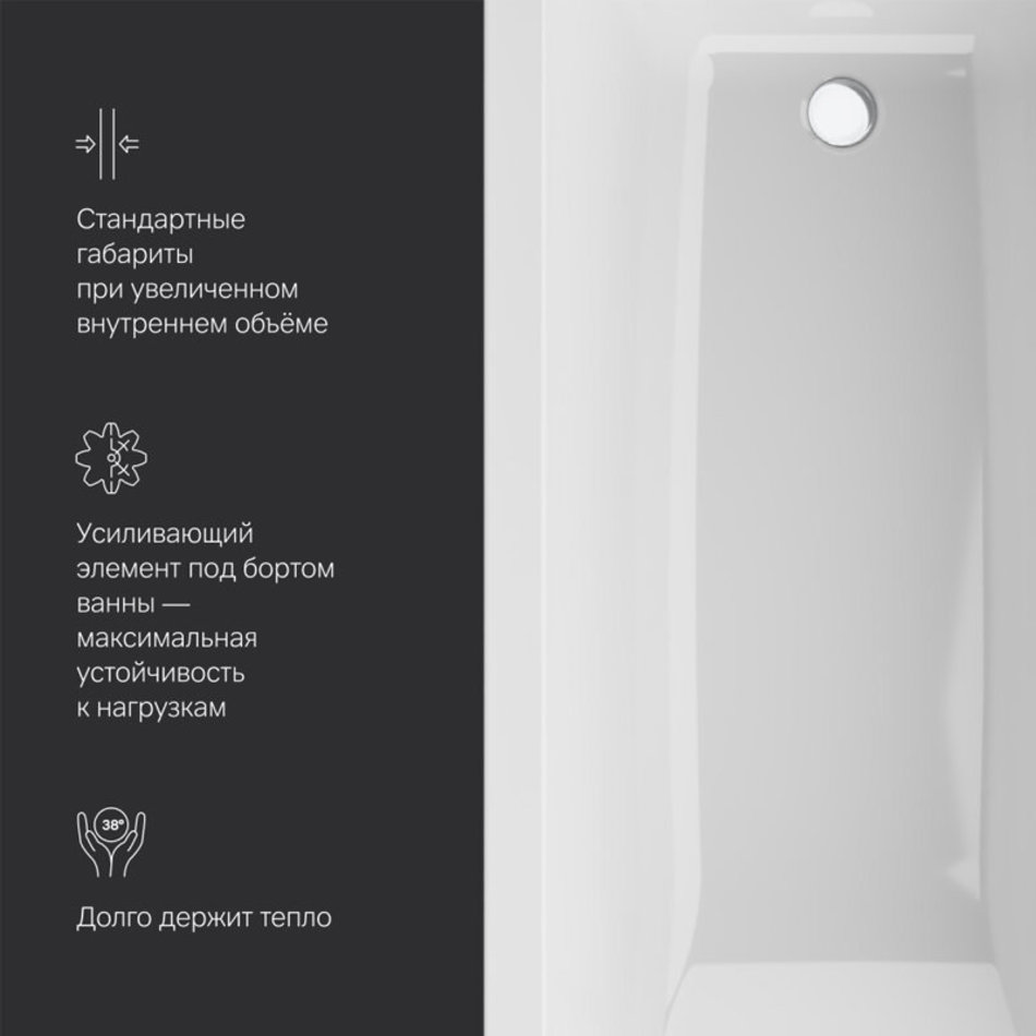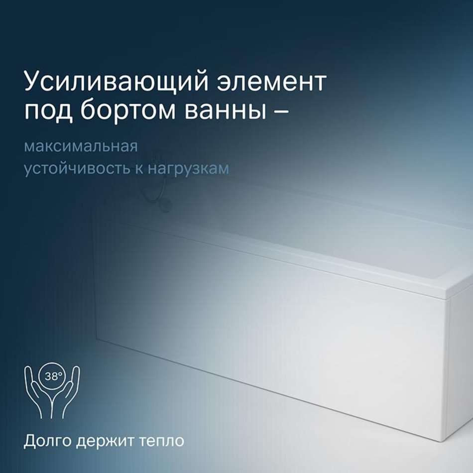 Удобная спинка и оптимальные размеры ванной гарантируют полное расслабление и хороший отдых. За счет низкой теплопроводности и теплоемкости акрила ванна поддерживает температуру набранной воды
