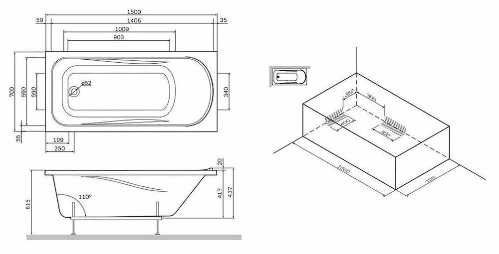 Сохраняя стандартные габариты, ванна имеет увеличенный внутренний объём, комфортный для человека любой комплектации.