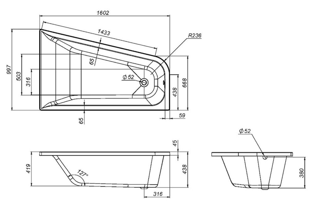 Ванна акриловая Am.Pm Spirit W72A-160R100W-A2, 160 x 100 см, правосторонняя