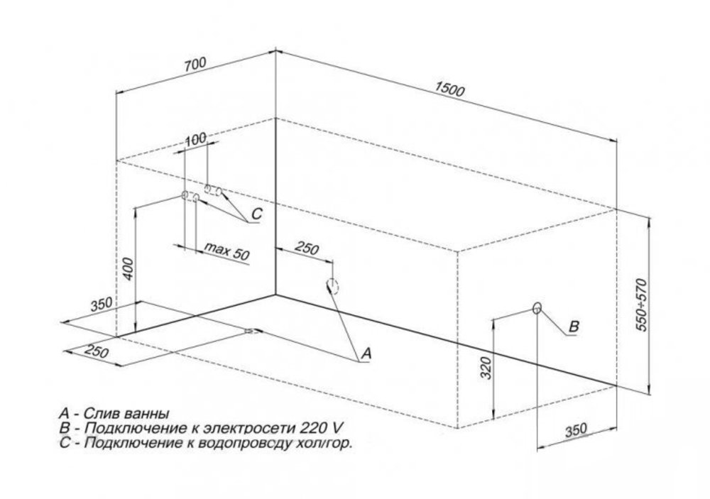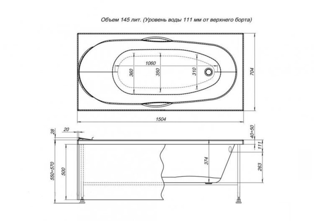 Ванна акриловая Aquanet Dali 150 x 70 см 00239385, белая