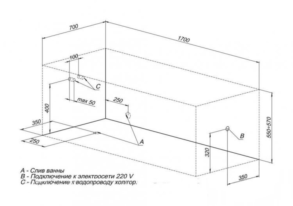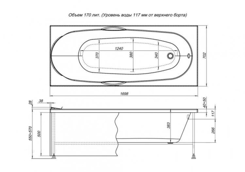 Ванна акриловая Aquanet Dali 170 x 70 см 00239293, белая