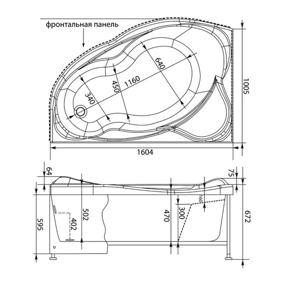 Фронтальная панель, каркас и слив-перелив приобретаются отдельно!