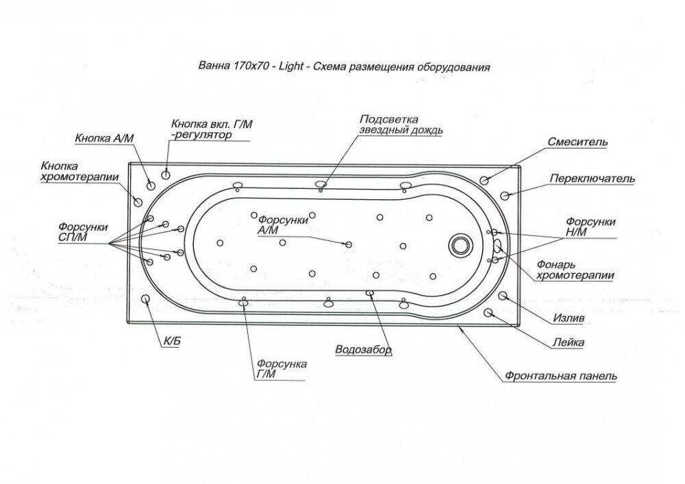 Фронтальная панель, устройство перелива, каркас, ножки, подголовник приобретаются отдельно.