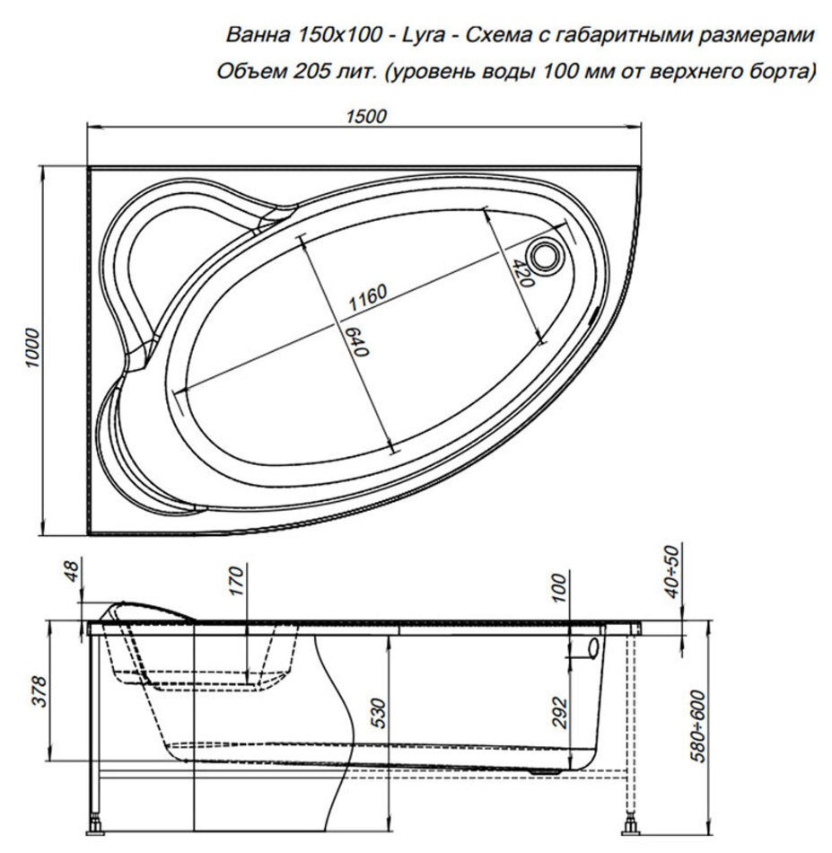 Акриловая ванна Aquanet Lyra 150x100 устанавливается в левом/правом углу ванной комнаты. За счет формы с элегантным изгибом она занимает немного места в помещении и при этом весьма вместительна. При глубине 292 мм в нее входит 205 литров воды. Слив-перелив расположен традиционно, а ближе к изголовью в чаше ванны предусмотрено углубление, предназначенное для сиденья. Часто эту удобную выемку используют как полочку для пеномоющих средств. Внешняя поверхность ванны обработана стеклоровингом в два слоя для достижения необходимой прочности, а в местах наибольшей нагрузки установлены закладные. Можно закрыть внутренние подключения с помощью фронтальной панели, специально разработанной для коллекции. Для установки ванны рекомендуем использовать сварной каркас.