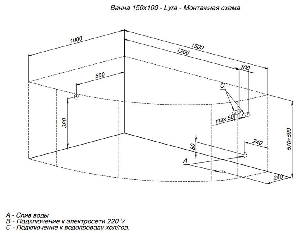 Ванна акриловая Aquanet Lyra 150 x 100 см, белая, левая/правая (00254757/00254758)