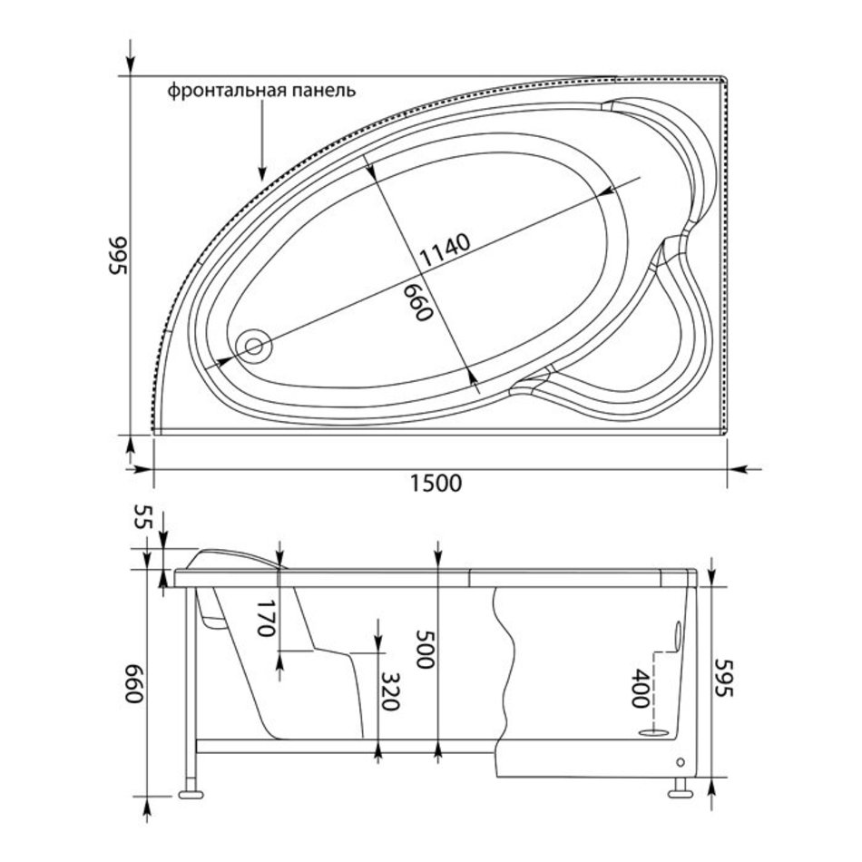 Ванна акриловая Aquanet Mayorca L/R 150 x 100 см, цвет белый