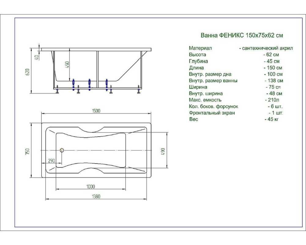 - Возможна установка системы гидромассажа, аэромассажа, ароматерапии, подводной подсветки, хромотерапии, системы дезинфекции