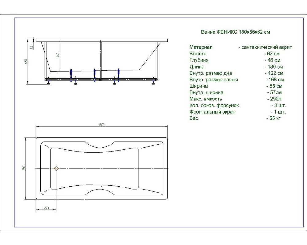 - Возможна установка системы гидромассажа, аэромассажа, ароматерапии, подводной подсветки, хромотерапии, системы дезинфекции