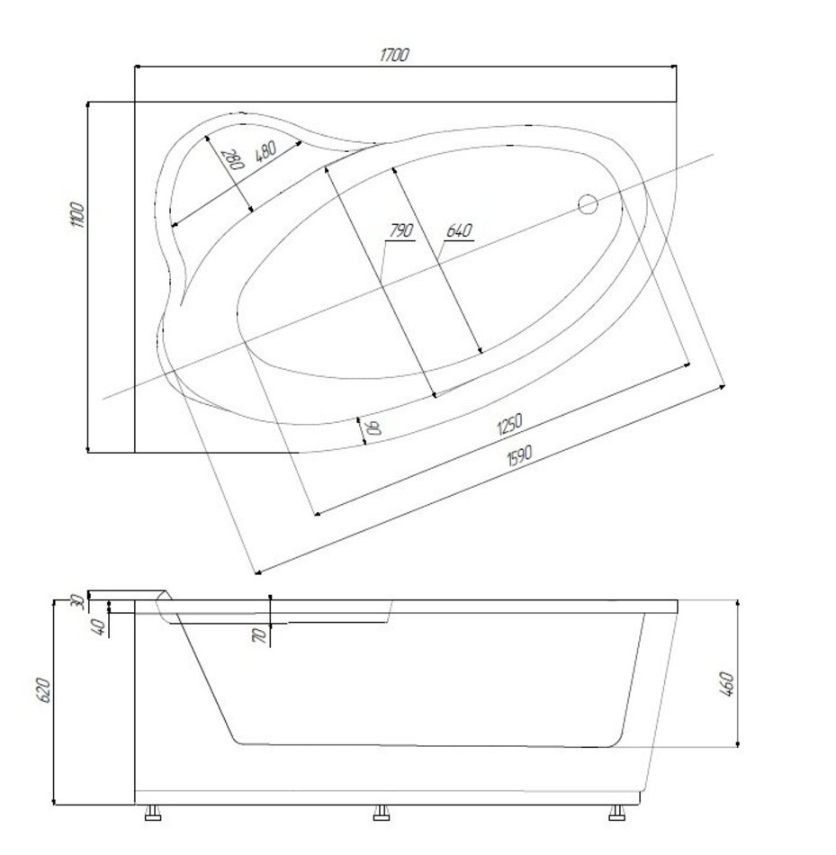 Ванна акриловая Акватек Фиджи 170 х 110 см, асимметричная, белая, левая/правая