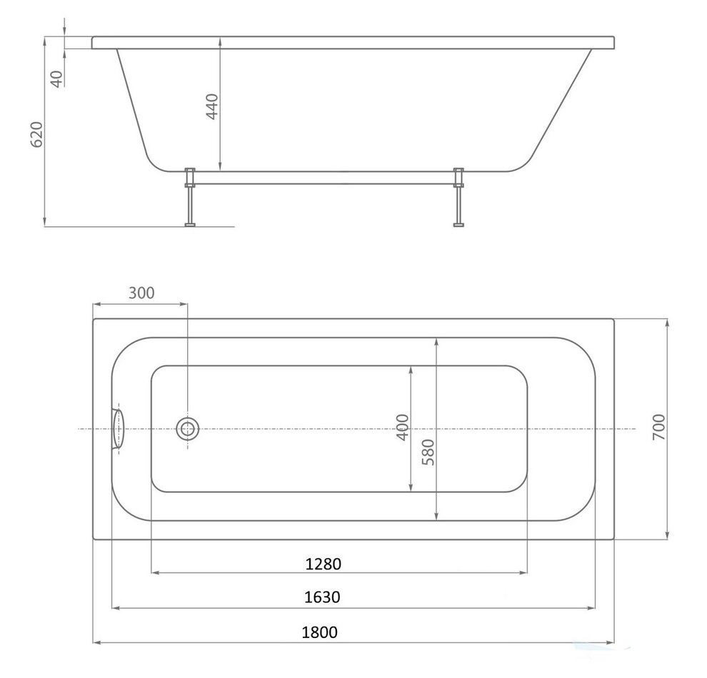 Ванна акриловая Aquatek Мия MIY180-0000007, 180 x 70 см, белый