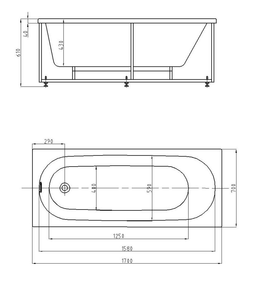 Ванна акриловая Aquatek Оберон 170 x 70 см с фронтальным экраном, вклеенный каркас, белая, слив слева, OBR170-0000038