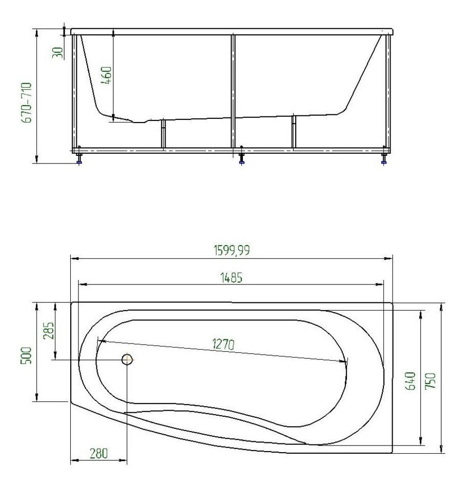 Ванна акриловая Aquatek Пандора 160 x 75 см без фронтального экрана, белая, правая, PAN160-0000054