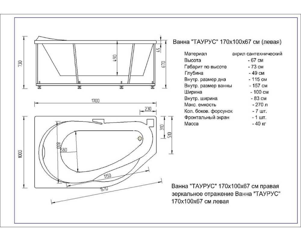 - Возможна установка системы гидромассажа, аэромассажа, ароматерапии, подводной подсветки, хромотерапии, системы дезинфекции