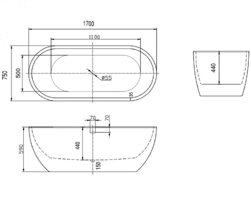 Акриловая отдельностоящая ванна, изготовленная из 100% литьевого акрила, имеет глянцевую, не пористую поверхность, что препятствует развитию бактерий и грязи.
