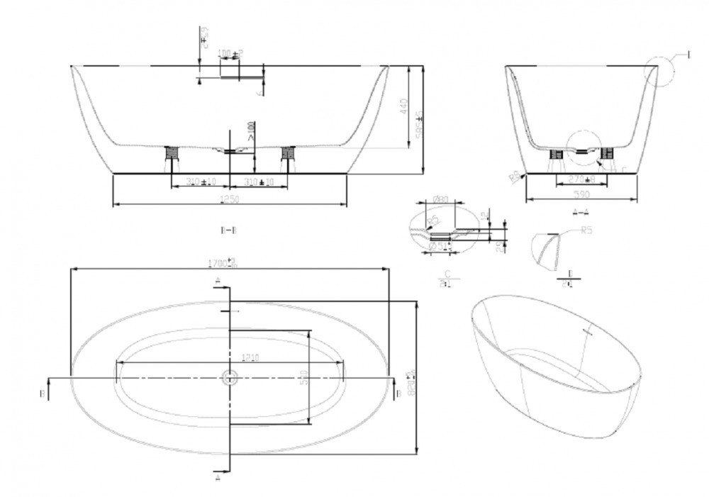 Ванна акриловая Art&Max Bologna AM-BOL-1700-820, 170 x 82 см, белый