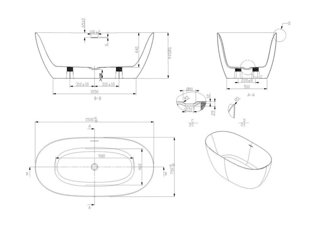 - Ванна акриловая отдельностоящая