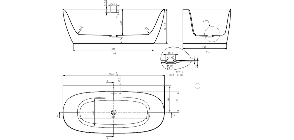 Ванна акриловая Art&Max Milan AM-MIL-1700-800, 170 x 80 см, слив-перелив в комплекте, белый