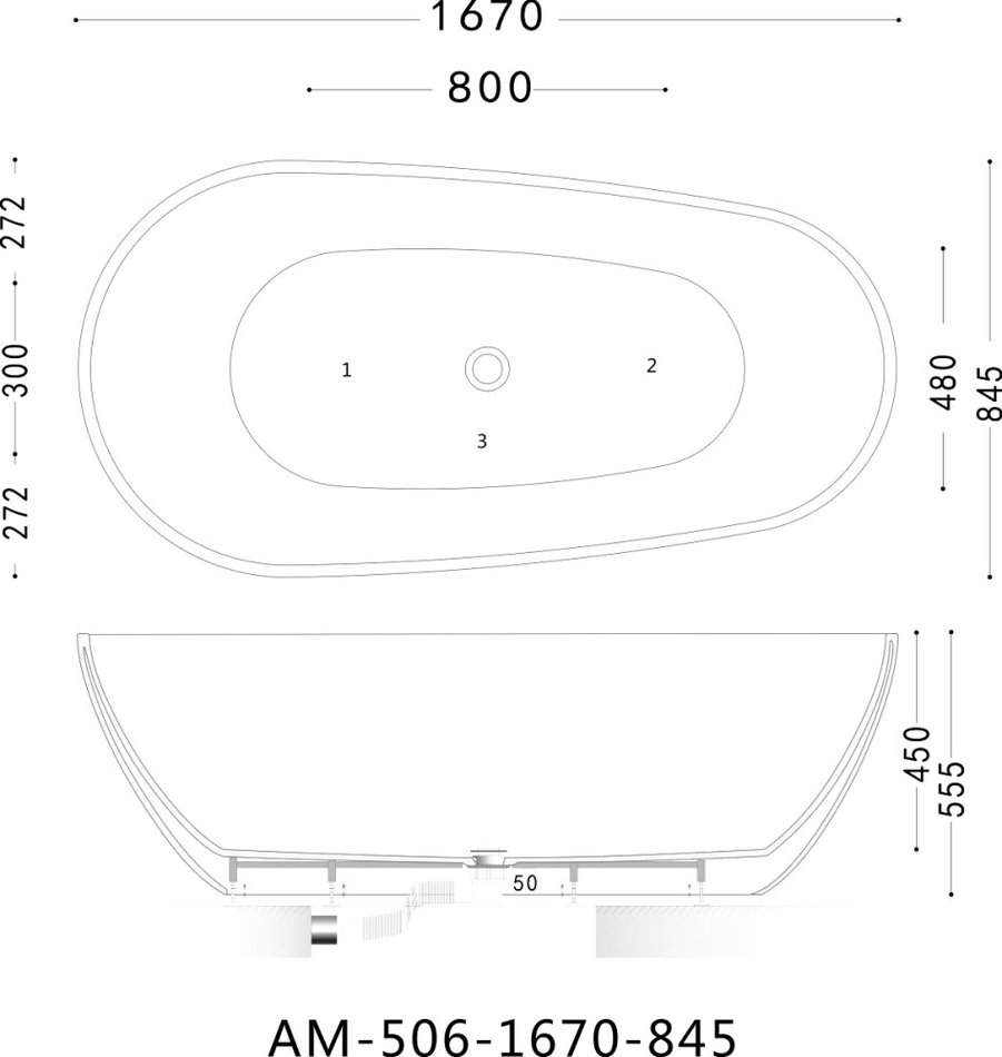 Ванна акриловая Art&Max Monza AM-506-1670-845, 167 x 84.5 см, слив-перелив и донный клапан в комплекте, белый