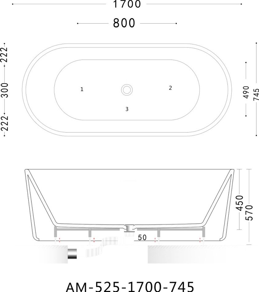 Ванна акриловая Art&Max Platino AM-525-1700-745, 170 x 74.5 см, слив-перелив и донный клапан в комплекте, белый