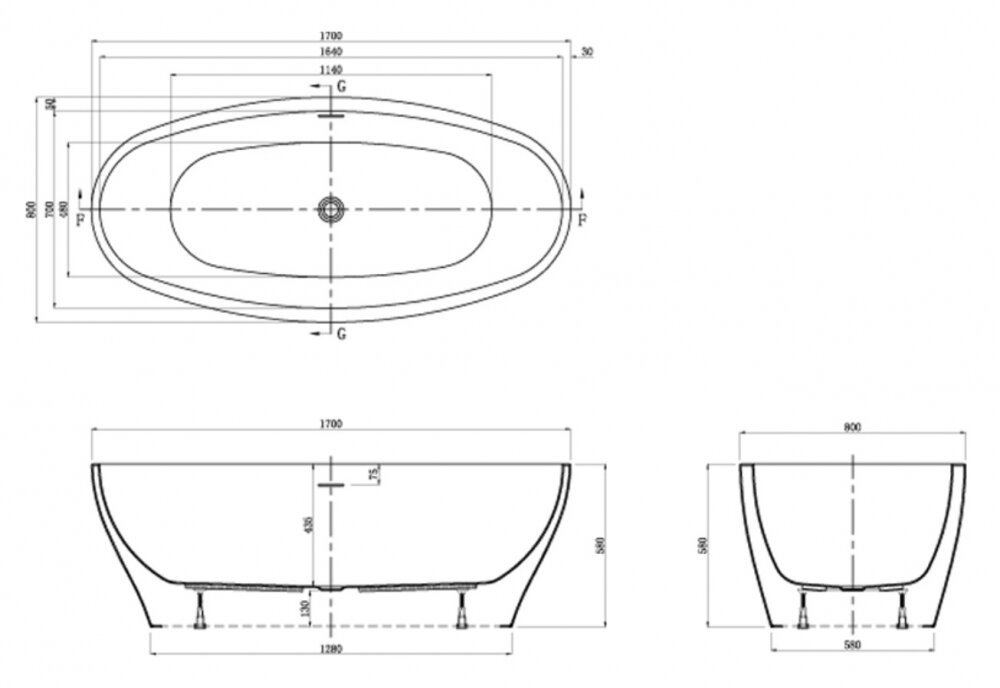Ванна акриловая Azario Cranston CRA17080 170 x 80 см, белая