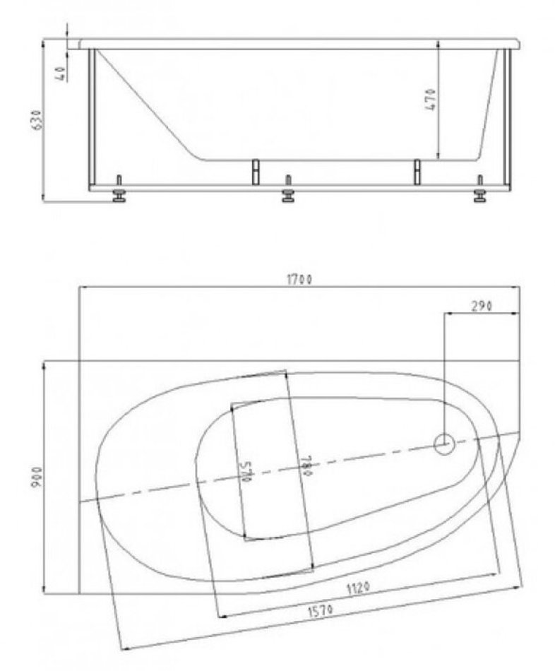Ванна акриловая Azario Kapris 170 x 90 см, белая, левая/правая