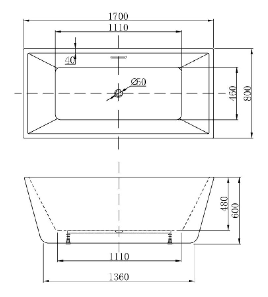 Ванна акриловая Azario Rowden 170 x 80 см, белая, AZ1342