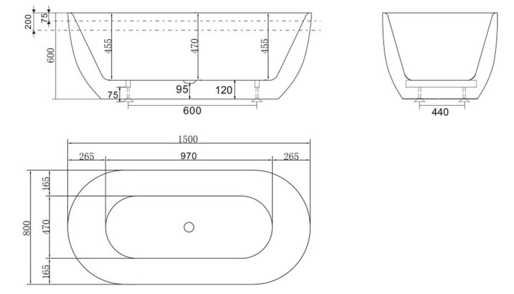 Ванна акриловая BelBagno 150 х 80 x 60 см, внешняя часть черная матовая, BB70-1500-800-W/NM