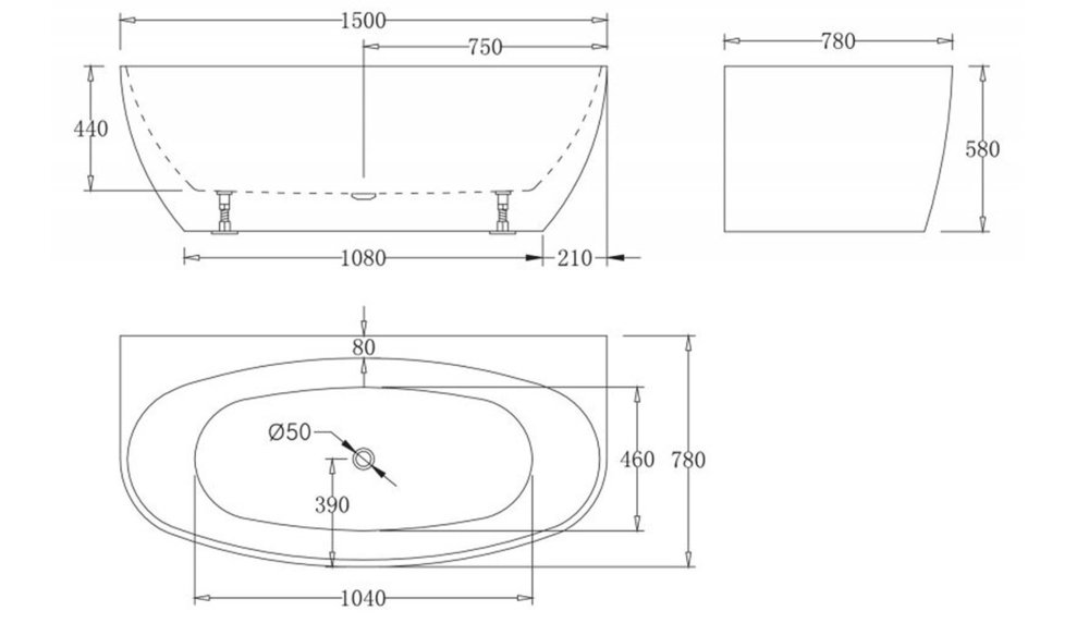 Ванна акриловая BelBagno 150 x 78 x 44 см, BB83-1500-W0