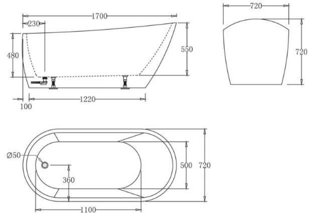 Ванна акриловая BelBagno 170 х 75 см, BB62-1700-W0