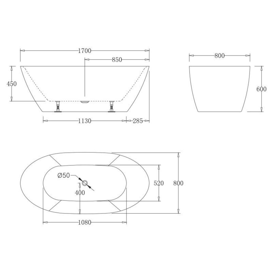 Ванна акриловая BelBagno 170 х 80 см, BB77-1700-W0