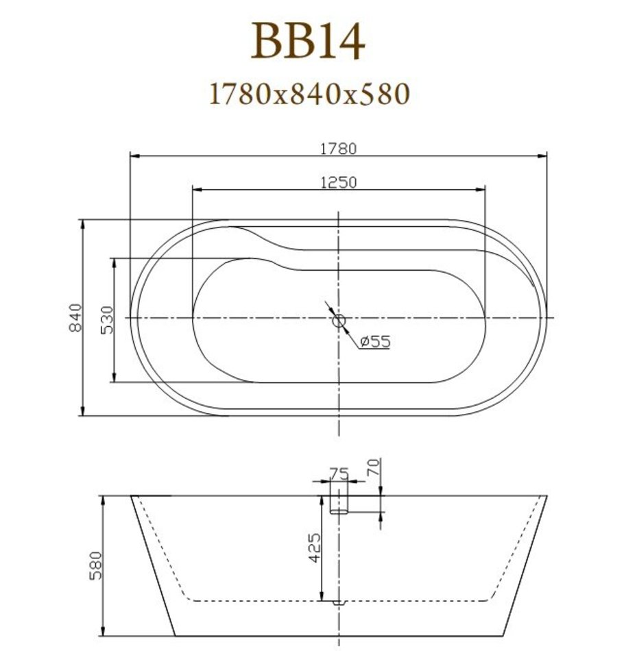Ванна акриловая BelBagno BB14, 180 х 85 см