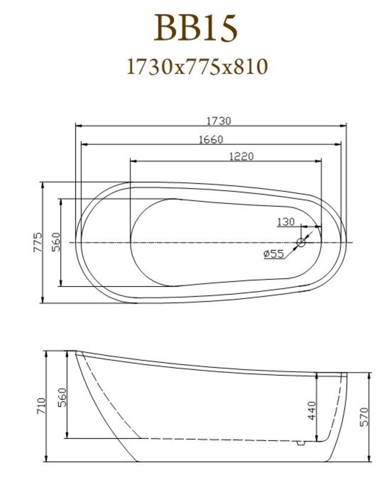 Ванна акриловая BelBagno BB15, 175 х 80 см