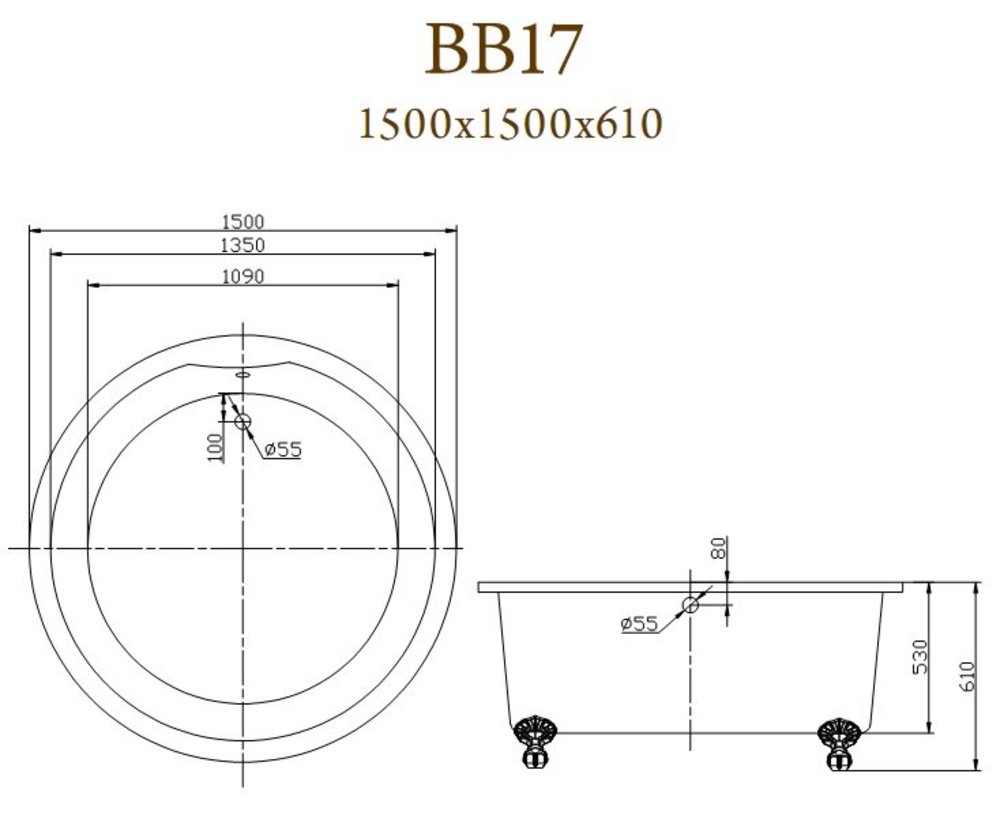 Ванна акриловая BelBagno, BB17-CRM - Хром