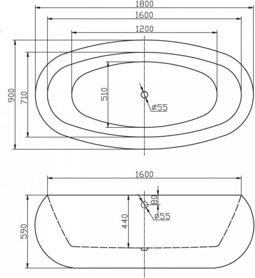 Ванна акриловая BelBagno BB18-NERO-BIA, внешняя поверхность черная, BB18-NERO/BIA