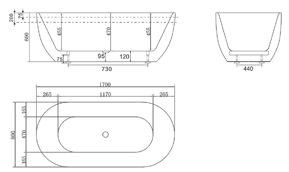 Наружные размеры: Длина (см) – 170Ширина (см) – 80Высота (см) – 60
