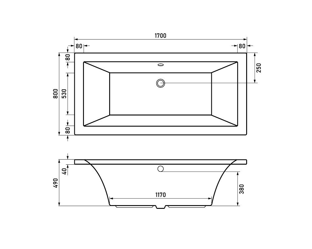 Ванна акриловая Berges Tari 170 x 80 см, цвет черный глянец, 052028
