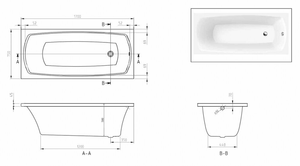 - Ванна пристенная