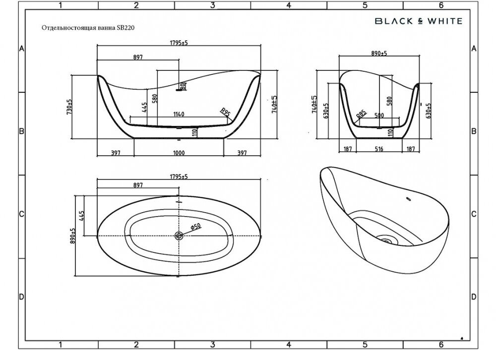 Ванна акриловая Black&White Swan SB220, 180 х 90 см, белая