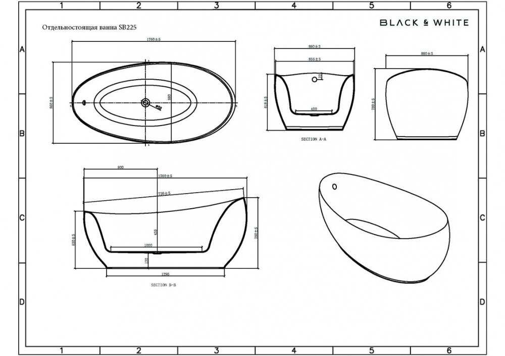 Ванна акриловая Black&White Swan SB225, 180 х 90 см, белая