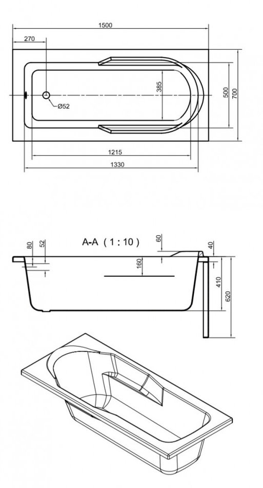 Ванна акриловая Cersanit Santana 63349 150 x 70 см, прямоугольная, белая