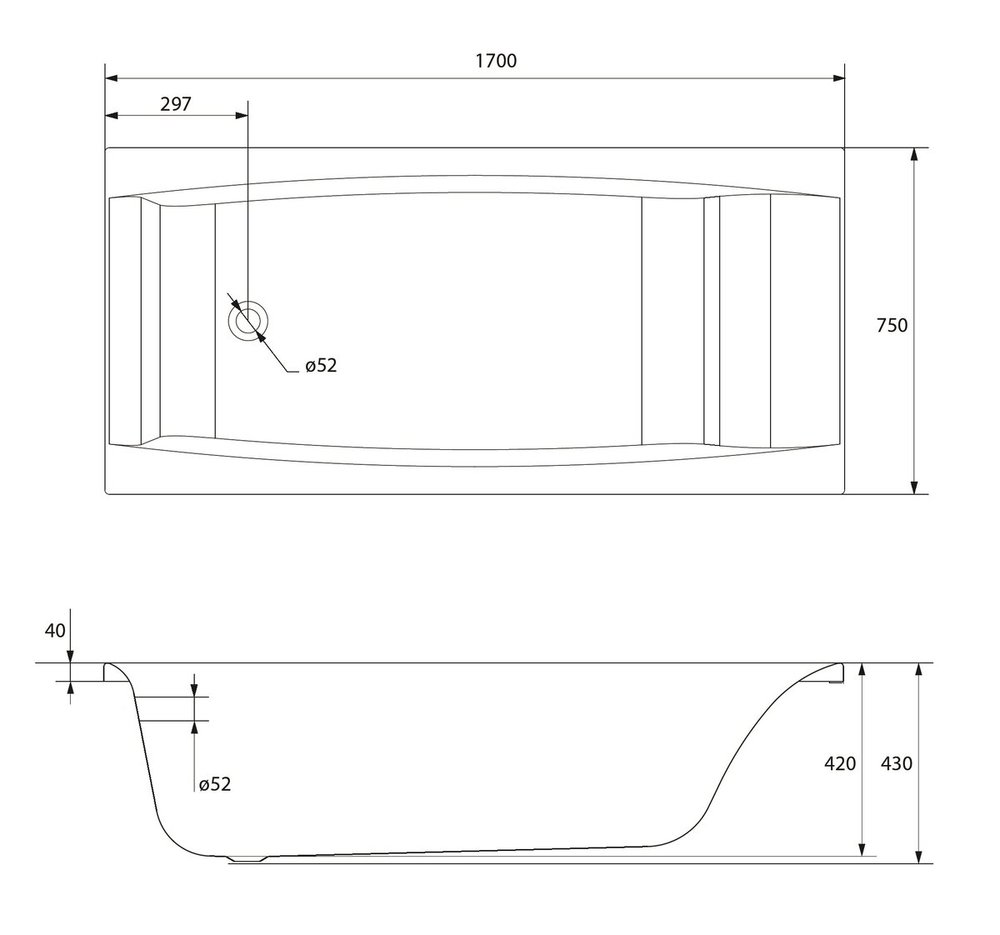 Ванна акриловая Cersanit Virgo 63353 170 x 75 см, прямоугольная, белая