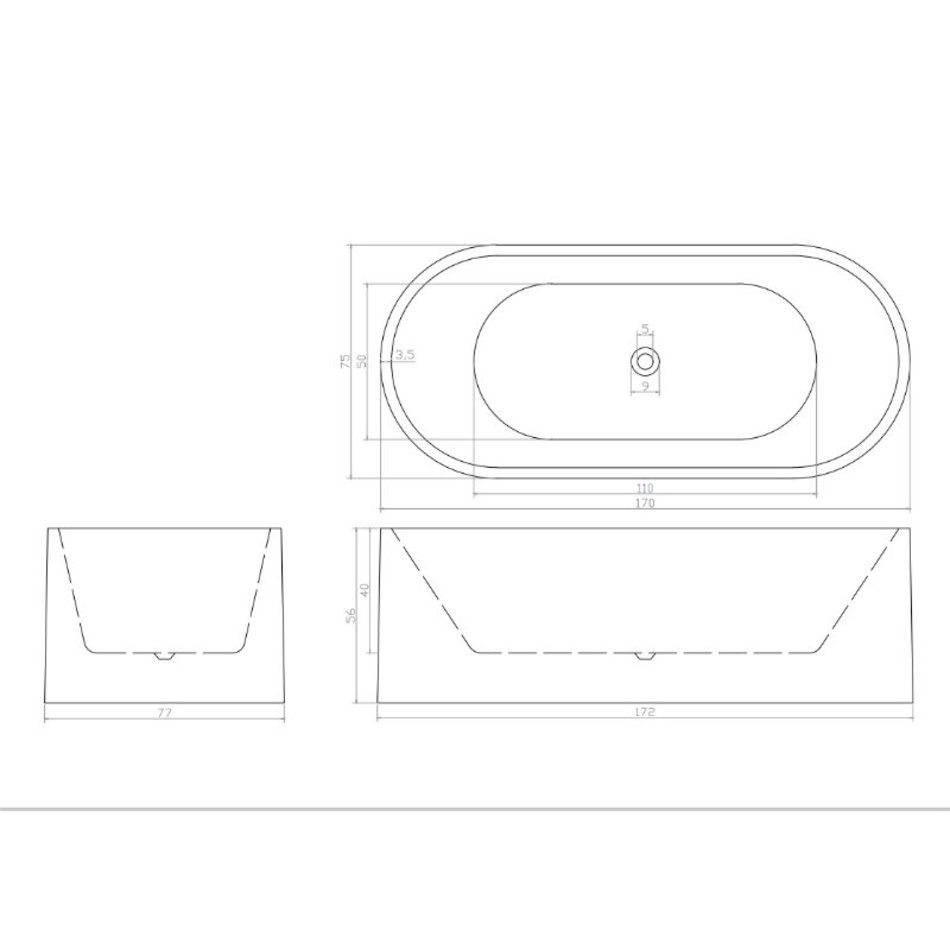 Ванна акриловая Ceruttispa Ceza S MB СT9907, 170 х 75 см, цвет черный матовый