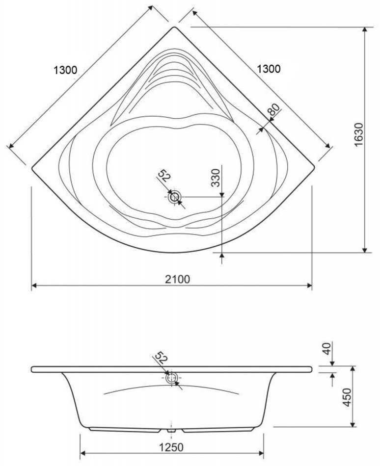 Ванна акриловая Cezares CETINA-130-130-41, 130 х 130 см