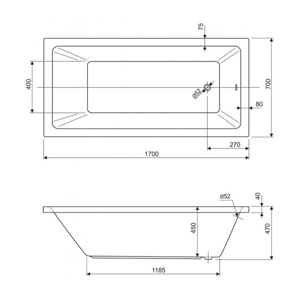 Ванна акриловая Cezares Plane 170 x 70 см, PLANE SOLO-170-70-45-W37