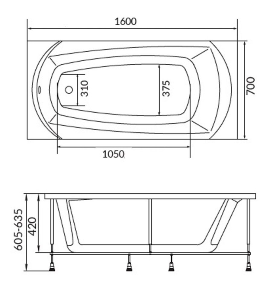 Ванна акриловая Creto Elegia 29-16070, 160 x 70, белый
