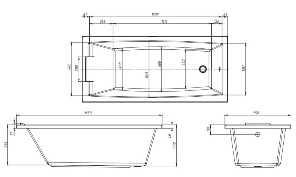 Ванна акриловая Creto Elite 11-16575, 165 x 75 MG, белый