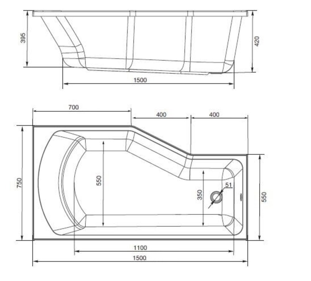 Ванна акриловая Creto Karmen 33-15075L/33-15075R, 150 x 75, левая/правая, белый