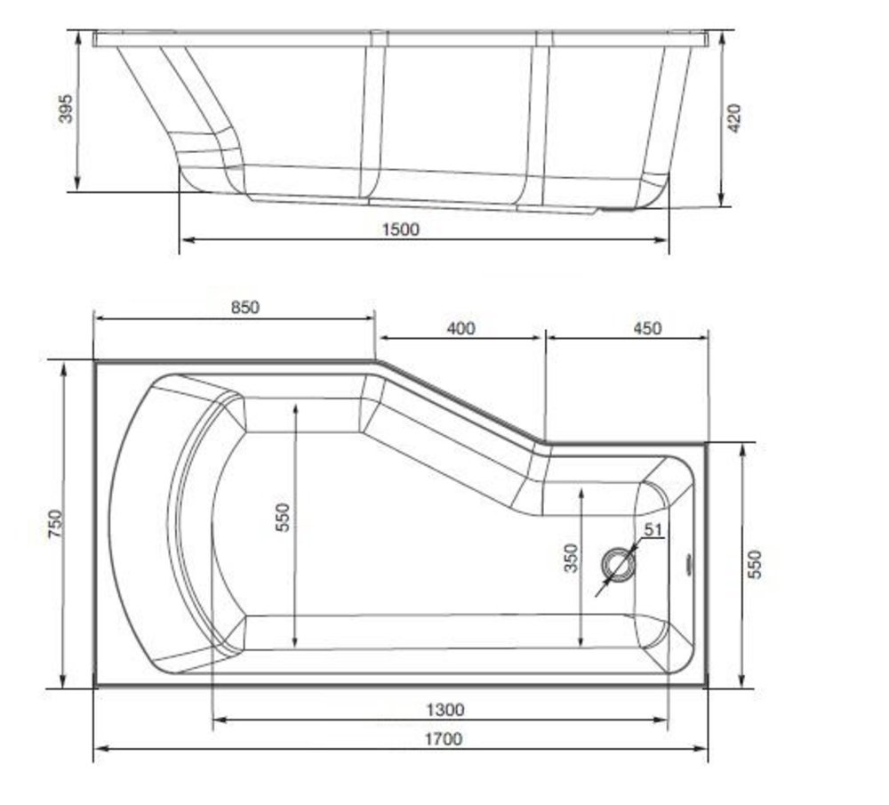 Ванна акриловая Creto Karmen 33-17075L/33-17075R, 170 x 75, левая/правая, белый