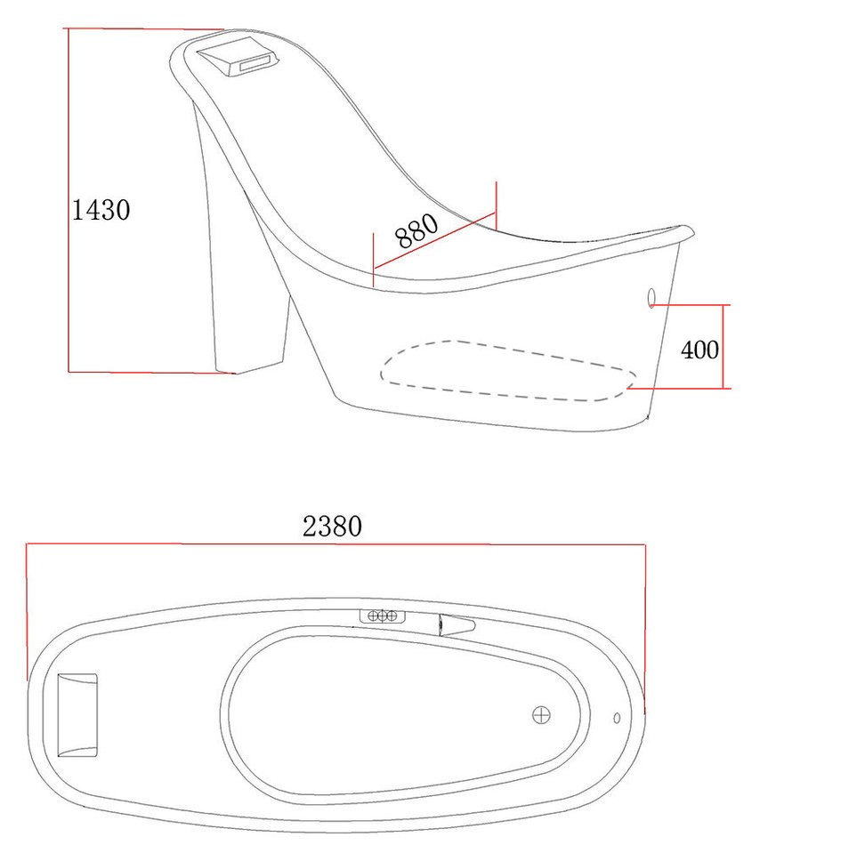 Ванна акриловая Gemy RF1253BG 238 х 88 x 143 см без гидромассажа, отдельностоящая, черная